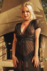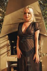 Raunchy blonde in black lingerie flirting on a balcony in Hayleys Secrets set Overlooked