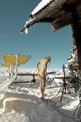 Ravishing blonde's cute nipples going hard on a winter air in Met Art set Alps