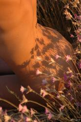 Ravishing Nely walking through a wildflower field fully nude in Met Art set Lilac