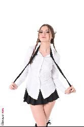 Sexy but cute brunette with pigtails seductively denudes herself and eases a big blue sex toy into her trimmed coochie in Istripper set May I Have An X
