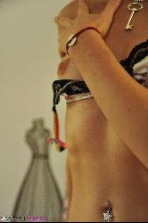 Short-haired coquette cupping her small boobies with delicate hands in Breathtakers set Boudoir