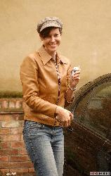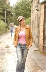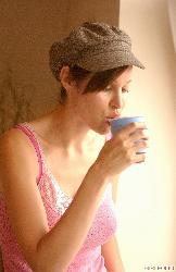 Short-haired cutie having a cup of coffee before going nude in Girlfolio set Amanda 001