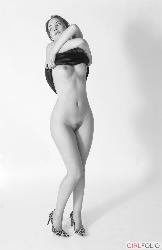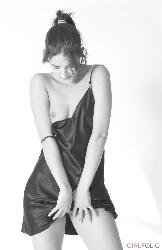 Silky nightie hugging perfect curves of a steamy brunette in Girlfolio set charlotte 002