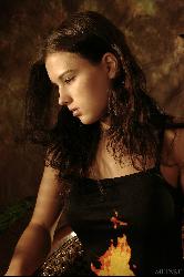 Sizzling brunette chick taking off her dress to show off tits in Met Art set Flaming Beauty