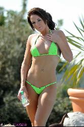 Sizzling stunner Jennifer Nexus pouring water over her athletic body in Breathtakers set Verde