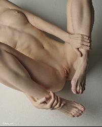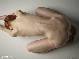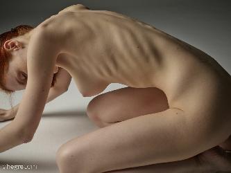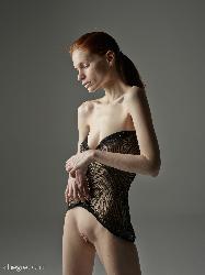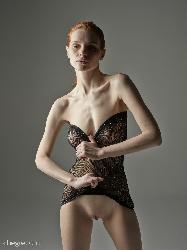 Skinny and captivating Vi slowly takes off her transparent top before flashing her boobs and yummy muff while posing on the floor in Hegre Art set Contrast
