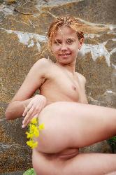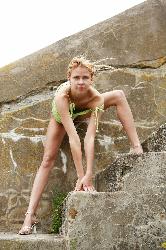 Skinny Debra G in high heels strips off and poses naked in the nature in Stunning 18 set Stone Staircase