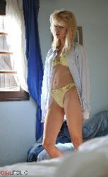 Slender coquette in yellow lingerie boasting a firm booty in Girlfolio set Good Morning