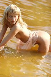 Slim naked vixen emerges from the muddy waters in Met Art set Psyka