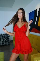 Sonya Blaze is a brunette angel as she strips down her red dress flashing her bombastic body in Metart set Thoughts