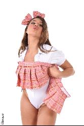 Superb model seductively takes off her mini skirt and flashes her huge juicy breasts and peachy ass accentuated by sexy bikini tan lines in Istripper set Innamoramento