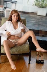 Sweet and charming brunette seductively bares her peachy ass and small cute breasts with big brownish areolas in Metart set Presenting Marina Gold