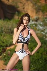 Sweet brunette taking off her bikini to take a swim in Breathtakers set Melissa's Skinny Dip