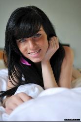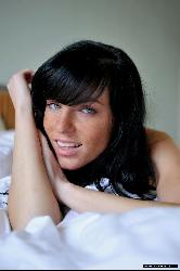 Sweet dark-haired cutie posing naked in blue fishnet pantyhose in Breathtakers set Eileen Feather