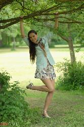 Tall exhibitionist smelling wildflowers while removing her elegant clothes in Girlfolio set Portfolio Show Off