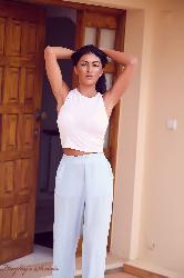 Tattooed goddess with tanned skin serving naughty looks while stripping in Hayleys Secrets set Back Home