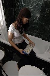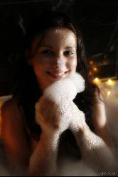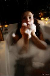 Teasing kitten takes a hot bath to warm up her twat in Met Art set Romantica