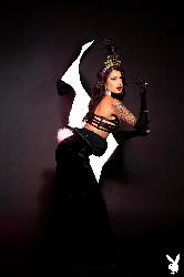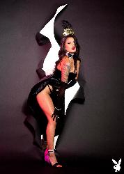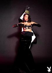 Tempting Roxy Ferrari teasingly reveals her nicely shaped body as she strips in the festive mood in Playboy set Stroke of Midnight