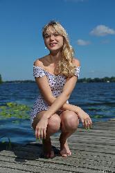 The adventurous blonde model takes off her dress and spreads her shapely legs wide open giving us a rear view of her lovely breasts and smooth pinkish muff in Metart set Secret Space