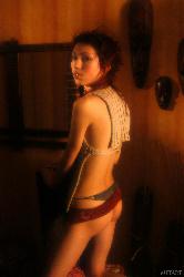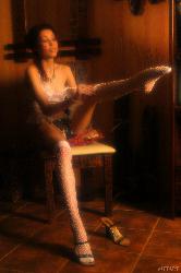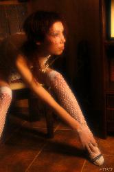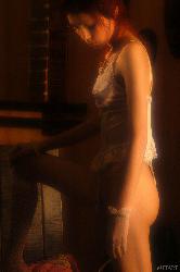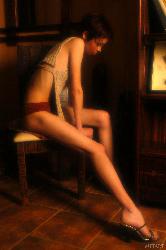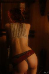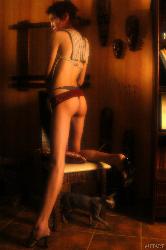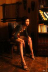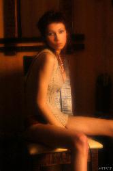 Thin short-haired brunette Erika C posing in thongs and fishnet socks in Met Art set Liaisons