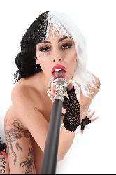 With an endearing smile Lya Missy shows off her perky breasts with big areolas and hairless cunt in Istripper set Lya De Vil