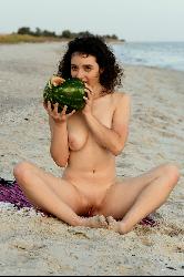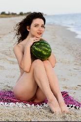 Yennefer loves to eat watermelon and poses nude at the beach in Metart set Presenting Yennefer