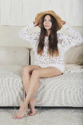 Youthful doll divests her white dress and goes face down ass up uncovering her tight butthole and yummy hairless punani on the couch in Metart set Hotty Hat