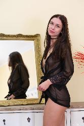 ANN O'Fee dans des talons hauts noirs enlève sa chemise de nuit et montre un corps parfait dans un ensemble de métart présentant Ann O'fee