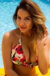 Bangeeuse brune brunette Banghard se détendre par la piscine topless à Hayleys Secrets Set Tease Tropical Tease