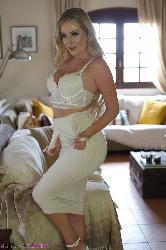 Belle élégante dans des sandales blanches révélant séduisante ses actifs torrides dans les époustoures set serein
