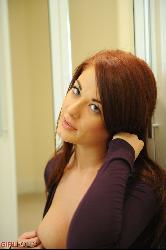 Belle rousse Sweatie Amber Mae montrant ses bas et talons dans le jeu de fille