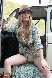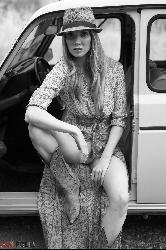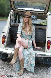 Blonde aventureuse hippie hippie clignotant sa culotte sur la route de Girlfolio Set Sexy Bo Ho Style Style