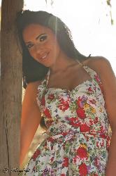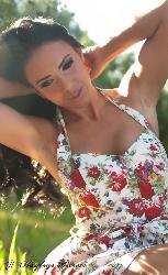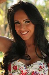 Bombasse brune à la poitrine à part entière relaxante dans la cour nue à Hayleys Secrets Set Summertime