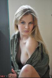 Brune séduisante montrant sa rasée et serrée Cunny à Girlfolio Set Ma chemise préférée