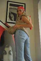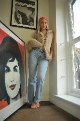 Brune séduisante se déshabille de son costume de 70s à Hayleys Secrets Définir la collection des années 70