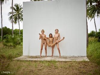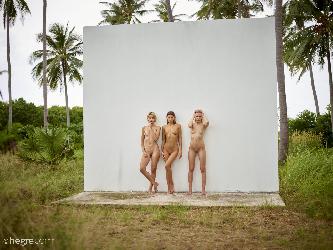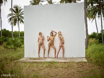 Burning Hot Babes pose de façon ludique Naked dans la jungle de Hegre Art Ensemble Nude dans la jungle
