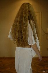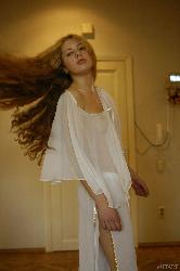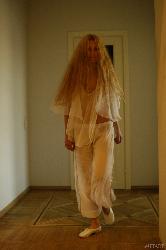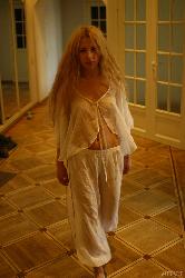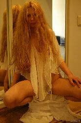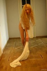 Charmante blonde clignotant ses seins sous Baggy White Top in Met Art Ensemble Présentation Sasha