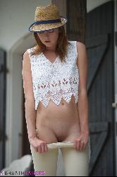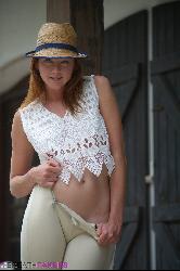Cowgirl rousse délicate enlevant son pantalon serré et ses bottes dans des époustoures se fixer la mode nue
