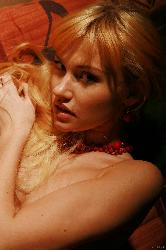 Cutie blonde irrésistible posant dans une lingerie rouge serrée dans l'art de l'art rencontré Pulsar
