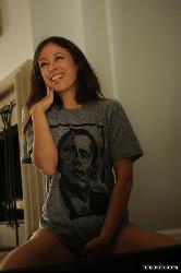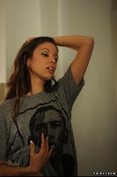Dainty brunette Angelina embrassant son reflet sexy dans le miroir de Girlfolio Set Angelina 003