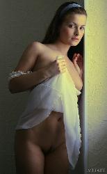 Délicat Brunette Cutie Adelina A pose dans une pure chemise de nuit à Met Art Set Devest