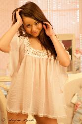 Délicate Brunette Cutie montrant son ajustement et son corps de petite taille à Hayleys Secrets Ensemble Romance