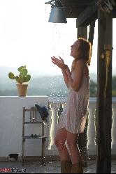 Délicieuse brune Elen Moore Prendre une douche sur son balcon dans le jeu de Girlfolio Refroidissement