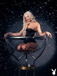 Elsa Jean expose ses seins ronds et son beau cul tout en exposant de manière extatique son corps sur une chaise dans Playboy set pour vous