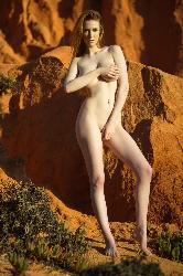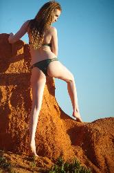 Fée à la peau pâle dans un bikini vert posant sur une plage à Hayleys Secrets Ensemble de plage de plage!