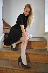 Hayley Marie Coppin Perdant son collant sur un escalier à Hayleys Secrets Ensemble Collants d'amour