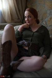 hottie rousse ardente révélant ses gros seins sous une grosse chemise dans Girlfolio Set Olive Green