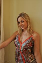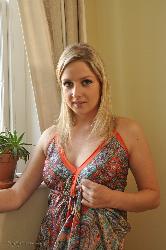 Irrésistible Blonde Cutie goutte sa robe d'été sur le sol à Hayleys Secrets Set Robe