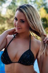 Jolie blonde ma chérie enlevant sa bikini au soleil bronzer au bord de la piscine à Hayleys Secrets Ensemble de filmer avec des glaçons