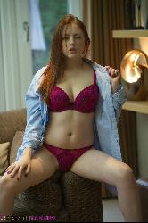 jolie rousse ma chérie montrant ses courbes dans une lingerie sexy dans les soufflets, ensemble Jenny Rose